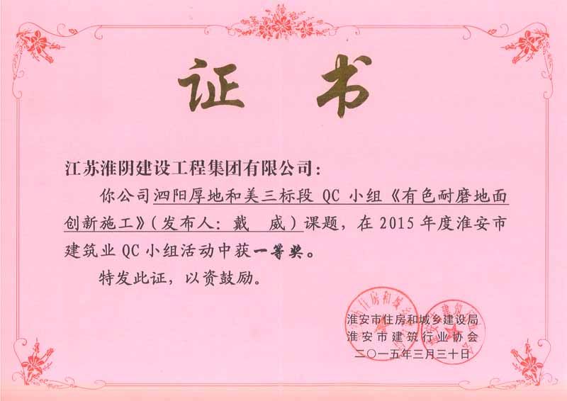 2015年全国工程建设优秀质量管理小组二等奖厚地和美三标