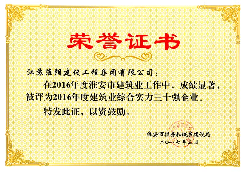2016年度建筑业综合实力30强企业