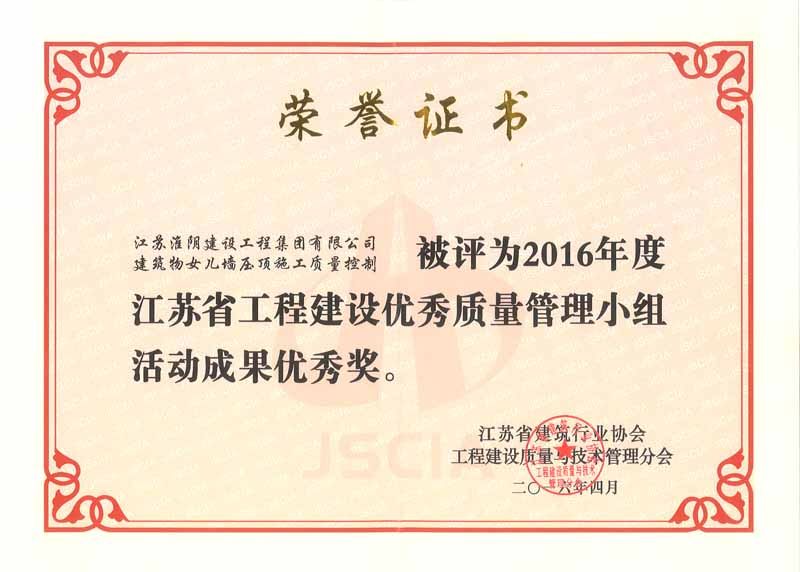 2016年省QC活动成果优秀奖