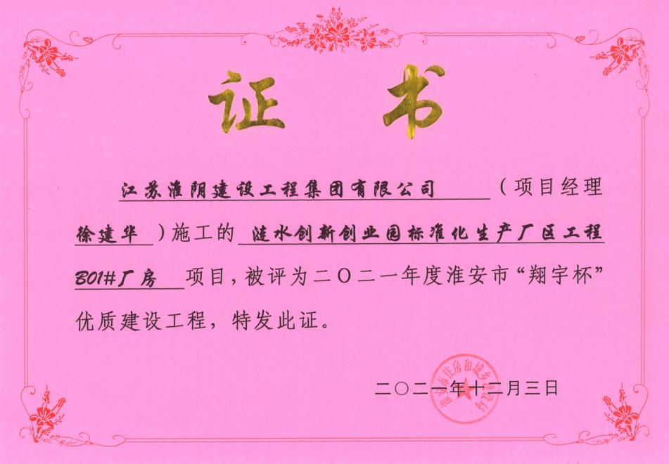 淮安市翔宇杯-涟水创业园标准化生产厂区工程B01#厂房