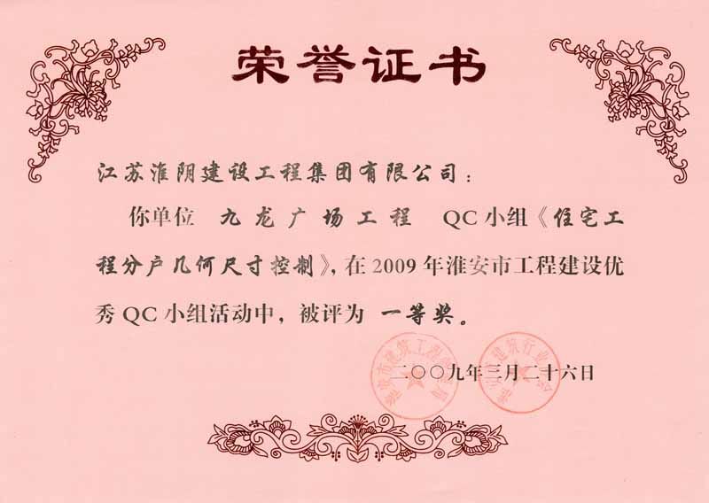 2009年市QC一等奖(九龙广场-住宅分户几何尺寸控制)