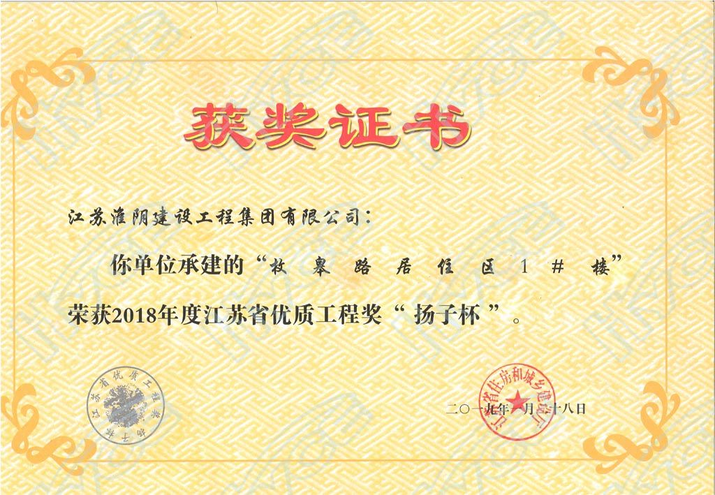 2018年度江苏省优质工程奖”扬子杯