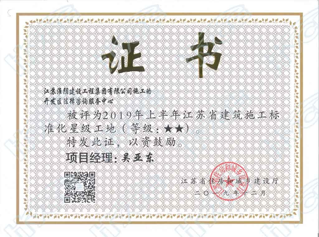 2019年度江苏省建筑施工标准化★★星级工地-开发区法律咨询服务中心