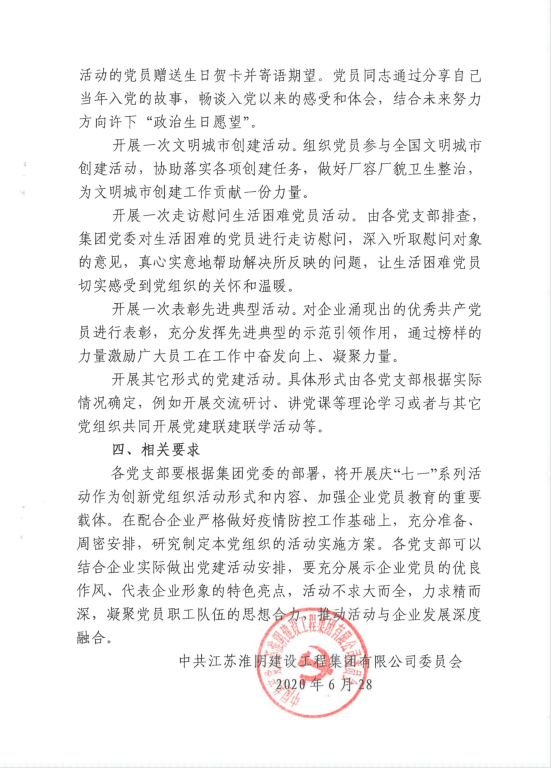 此次主题党建活动是集团党委庆七一系列活动之一。此前,集团党委分别召开了“学党史·感党恩·铭责任”专题党课,开展了优秀共产党员评比表彰活动,组织了党员参与文明城市创建活动等,提升了基层党组织的向心力、凝聚力和战斗力。